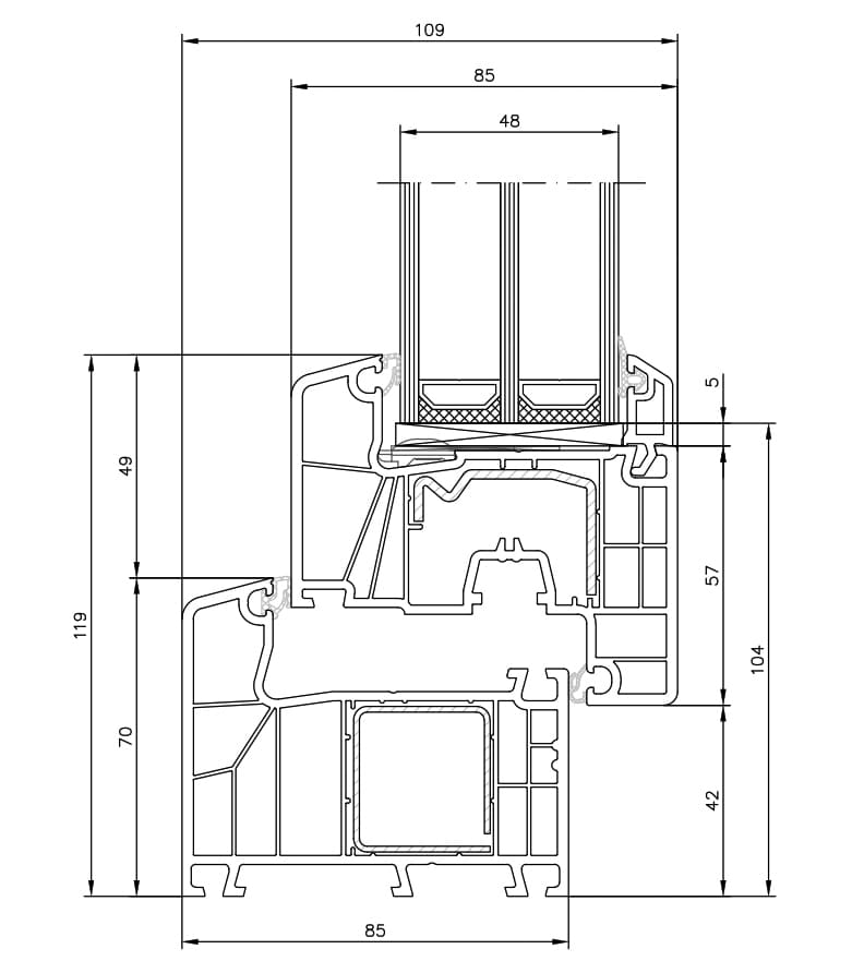 • IDEAL 7000 je príkladom synergického využitia vlastností profilov a izolačných skiel s cieľom vytvárať okná, ktoré sa vyznačujú veľmi nízkym súčiniteľom prestupu tepla. Hodnota súčiniteľa prestupu tepla profilov Uf = 1,1 až 1,0 W/m²K dosiahnutá v testoch, v kombinácii s možnosťou použitia širších a teplejších zasklení, zaručuje najlepšie tepelnoizolačné parametre okna.
